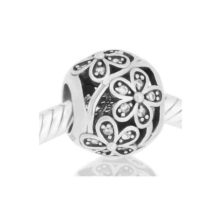Abalorio Niagarra de plata 925 flor y piedras blancas.