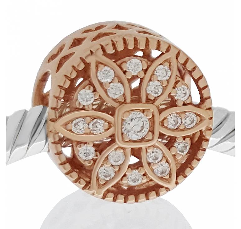 Abalorio Niagarra en forma de FLOR, bañado en oro rosa y piedras blancas.