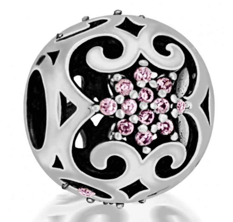 Abalorio Niagarra de plata de ley con piedras rosa.